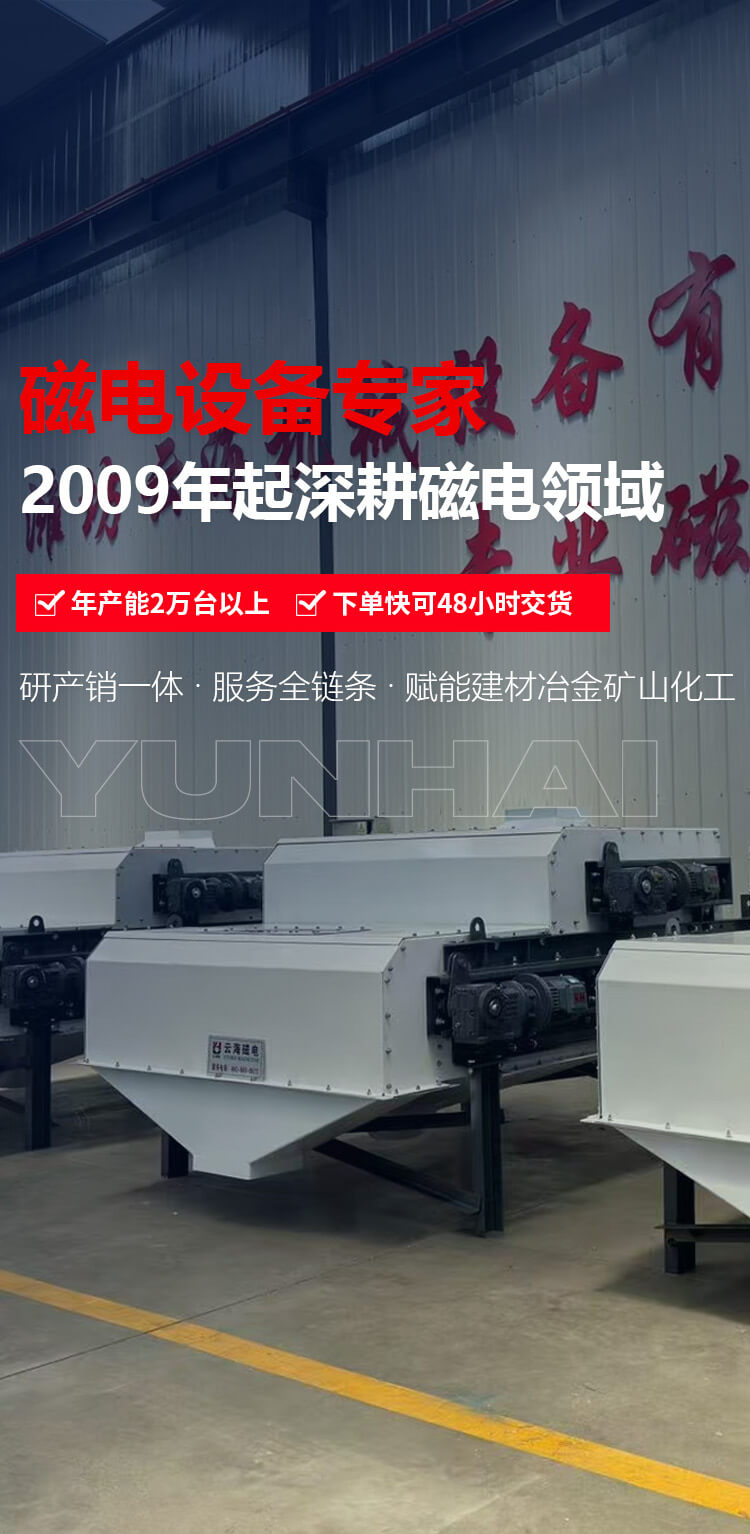 濰坊云海機(jī)械設(shè)備有限公司始建于2009年,是生產(chǎn)磁電機(jī)械設(shè)備的廠家。系生產(chǎn)建材、冶金、礦山、化工等行業(yè)微機(jī)自動(dòng)化、檢測(cè)、控制專用設(shè)備的公司。主要產(chǎn)品工業(yè)自動(dòng)化配料系統(tǒng)、電磁永磁除鐵器、永磁磁選機(jī)、電磁振動(dòng)給料機(jī)、皮帶螺旋輸送機(jī)、電磁滾筒、破碎機(jī)、包裝機(jī) 、除塵器等系列產(chǎn)品。